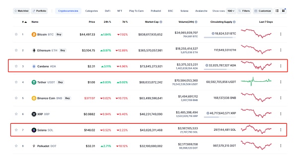 本期內容我們先來講講近期勢頭正猛的兩個選手:?Cardano和Solana