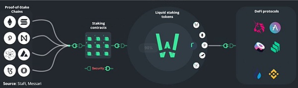 ?上圖:當前市場上主要的流動性質押協議及各自質押的代幣總價值。圖源:Messari