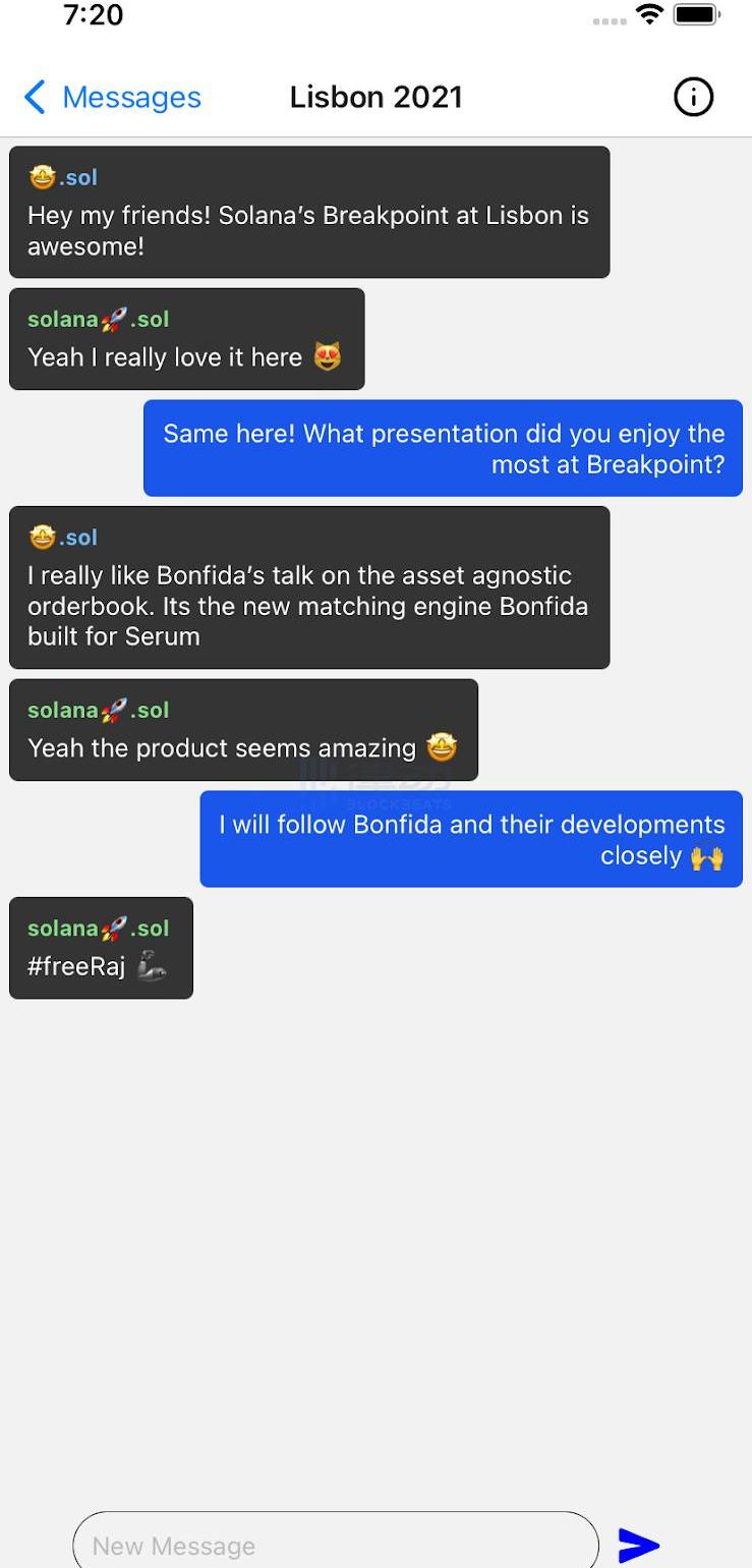 11月底,Jabber上線了app的測試版。Jabber是一款「Telegramlike」的聊天App,而它有趣之處在于,每一條消息,都是一筆在Solana鏈上發送的交易。受益于Solana的高性能和低成本,將消息作為交易發送,并不會讓用戶的成本高到難以承受。