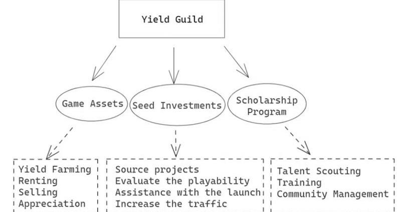 生態系統中有三個元素與YGG直接相關:種子投資、二級市場和獎學金項目。不要將YGG視為一個游戲公會,而是將其視為一個專注于加密貨幣/非加密游戲的投資機構,與玩家和開發者都有著非常密切的關系,不僅在經濟上為項目提供幫助,還在項目指導和社區貢獻方面提供幫助。