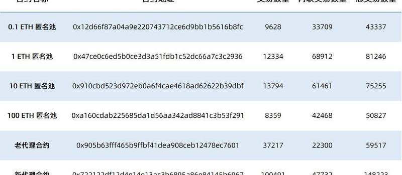 可以看到,在啟用代理合約后,大量交易都是通過代理進行,通過匿名池交易量占比圖可知,1ETH匿名池和10ETH匿名池是使用最多的匿名池。