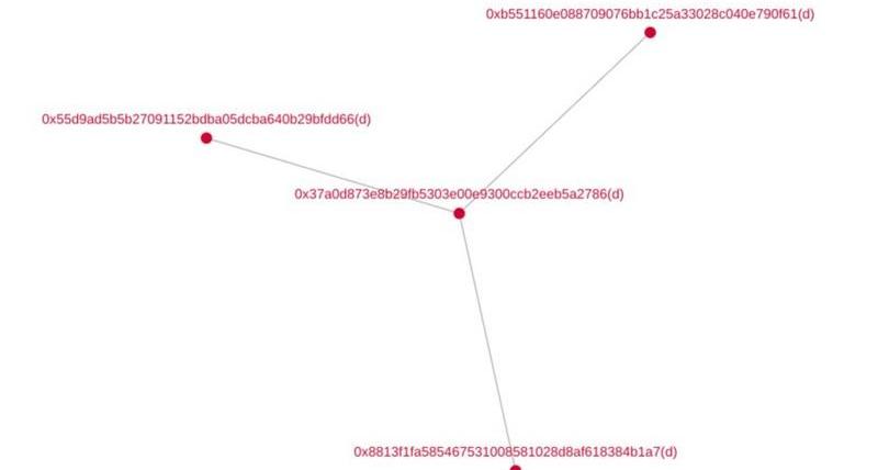 提幣地址與提幣地址之間存在關聯關系,以0x9c67d8383f1eeb6e2ff2b0d296aa6a51ea2858a1為例: