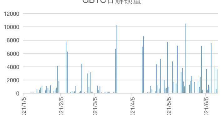 下圖表示GBTC每日解鎖量。從圖中可以看出,5月和6月還會繼續有大量的GBTC解鎖,這會對GBTC在二級市場的價格起到平抑作用,GBTC可能會繼續保持折價的情況。