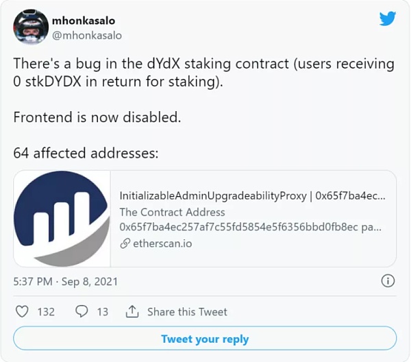 ldYdX staking 機制出現漏洞,可能會鎖定用戶存入的代幣: