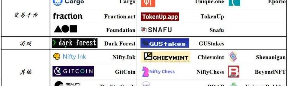 xDaiChain的低成本和高性能使它成為最有效的以太坊外溢器之一,目前xDaiChain上有接近100個Dapp,基本分布在生態基礎設施,P2P支付,Defi,DAO治理,數據分析工具,NFT。比較有代表性的項目包括DuneAnalytics,UniqueOne,DeBank,Honeyswap,PerpetualProtocol,DarkForest等。其中NFT項目占20%,以交易平臺居多。下表展示了xDaiChain上的NFT生態: