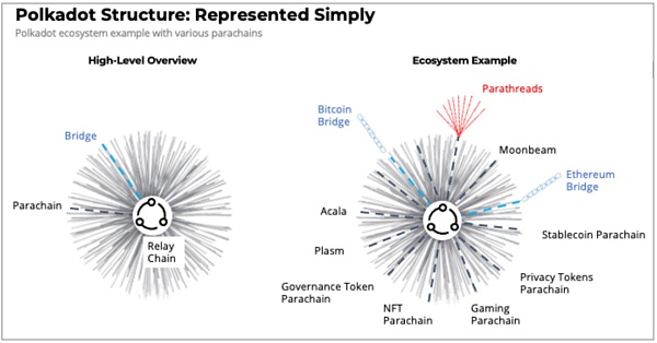 Polkadot 作為一種“元協議”,旨在連接所有區塊鏈,以便它們可以并行處理信息。換句話說,Polkadot 的目標是成為一個協議協議——一個連接所有 Layer1 區塊鏈(例如比特幣和Ethereum)及其應用程序(例如 ERC-20 代幣)的 Layer0 解決方案。這個想法也可以被稱為“共識執行者”。
