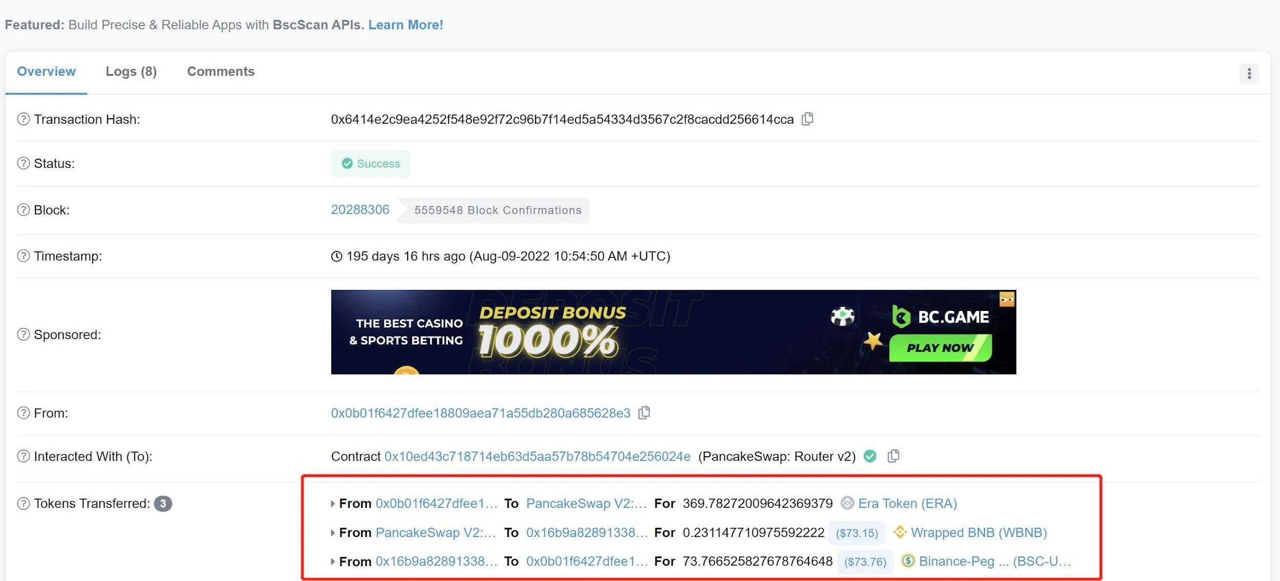 https://www.bscscan.com/tx/0xb2c6d753decf7ff7db17b5f756ea647749ce2edb8d9a25bea8a31c967a816da5