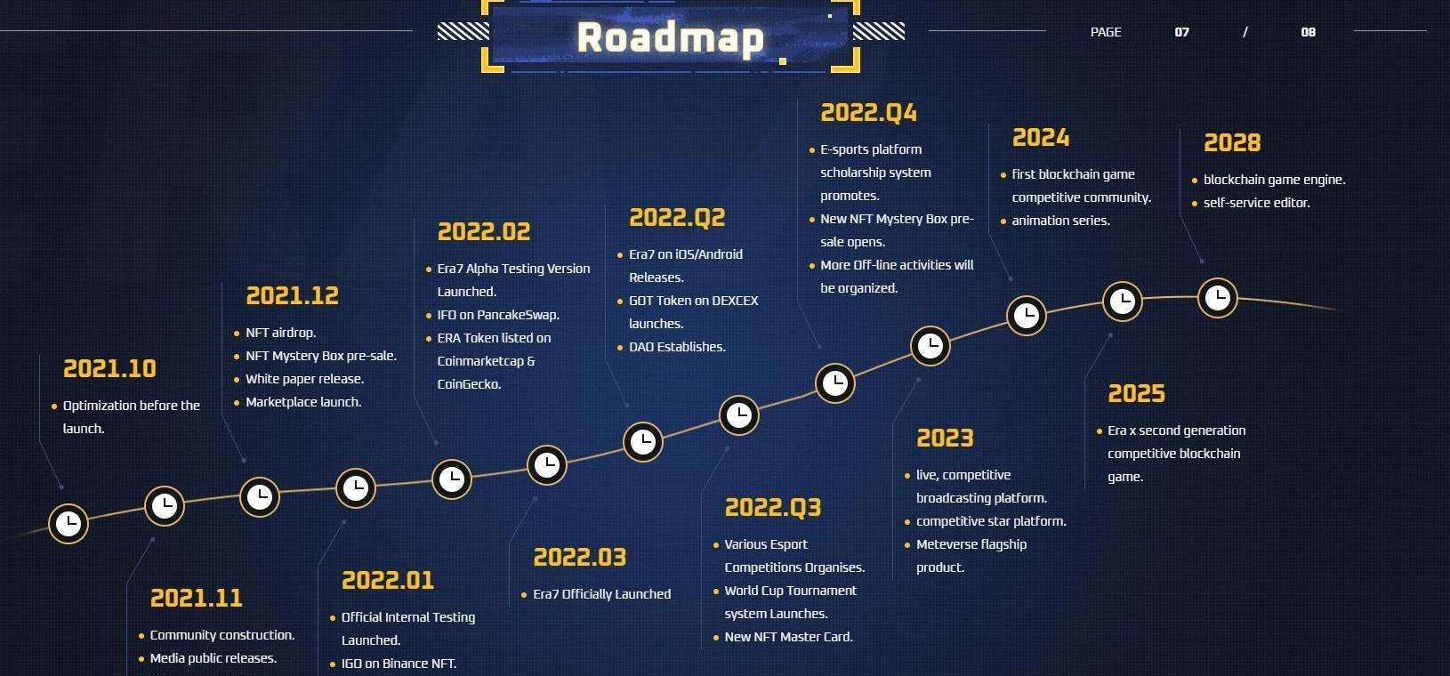 Roadmap2021年12月,游戲開始空投NFT和預售盲盒,Marketplace開啟;游戲于2022年3月30日正式在BNB鏈上線。下圖為官方Roadmap