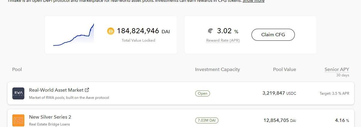 Goldfinch($GFI)Goldfinch是一個面向真實世界債務基金和金融科技公司的去中心化信貸協議,目前貸款總額已超過1億美元。投資者可以向貸款公司資金池提供資金,以賺取利息。