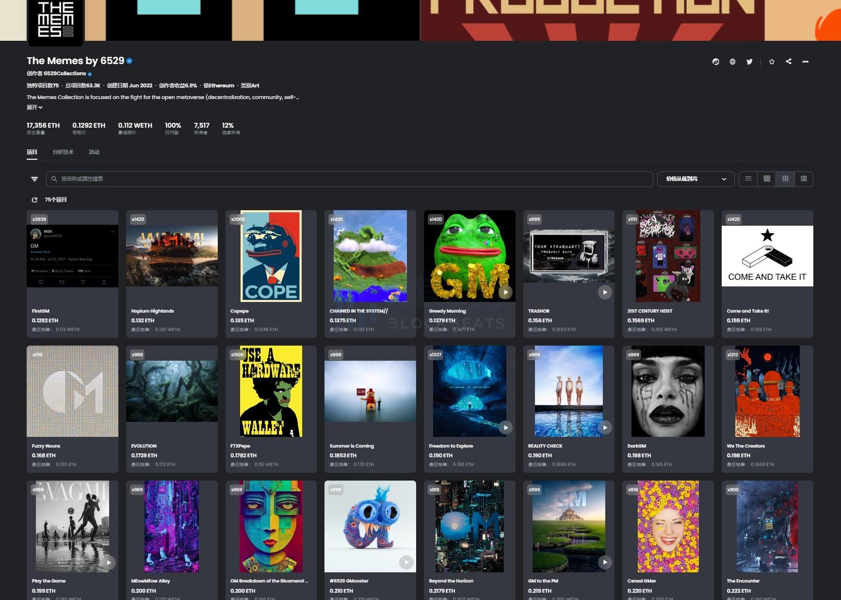 Punk6529的Memes系列也采用了ERC-1155。如果這些NFT都是一個個獨立的ERC-721項目,NFT玩家的購買體驗要大打折扣,創作者也會有一堆的智能合約要管理