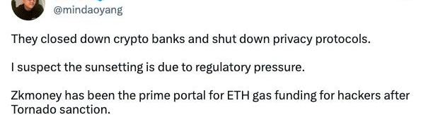 如今,雖然zk.money和AztecConnect將被放棄,但AztecNetwork本身并不會停下腳步,并將把此前的開發經驗和技術積累作為鋪墊,專注于去中心化、隱私型通用區塊鏈的建設。作為ZK賽道的老牌項目,再加之a16z等頭部機構的重金支持,AztecNetwork的一舉一動都在被市場密切關注,今日的“關停”公告也不出意外地在社區之內掀起了密集討論。有人在呼吁分叉AztecConnect合約,延續這個隱私方向的重要基礎設施。也有人在探究AztecNetwork轉型的原因,比如dForce創始人Mingdao就推測認為監管壓力才是背后的主因所在——因為在Tornado遭遇制裁后,zk.money已成為了黑客洗錢的主要渠道。