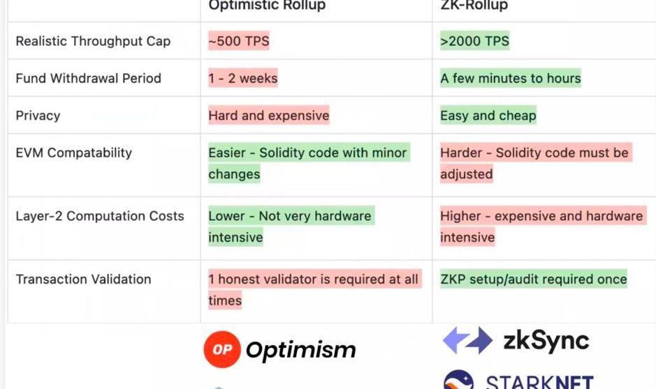 針對以太坊的垂直擴容以Rollup為主,這也正是當前Layer2的主流解決方案。ZkSync、StarkNet、Optimism和Arbitrum都采用了Rollup路徑,但是zkSync和StarkNet采用的ZKRollup路線可部署合約的方式尚不成熟;Optimism采用的使用欺詐證明的OptimisticRollup方式導致提款過慢。