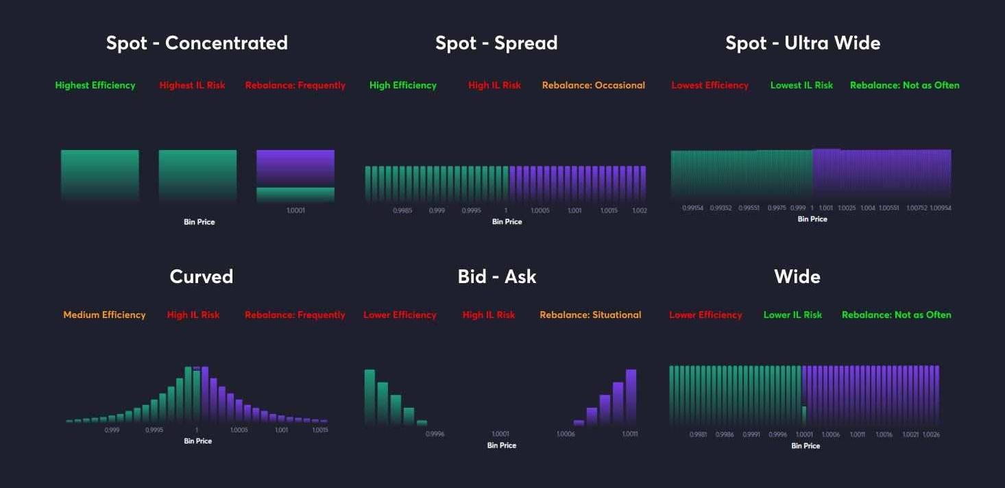 3)Spot-UltraWide:流動性放在200個以上的桶,形成較大的價格范圍覆蓋,因此資本利用率也低,適合價格波動較大的幣種。