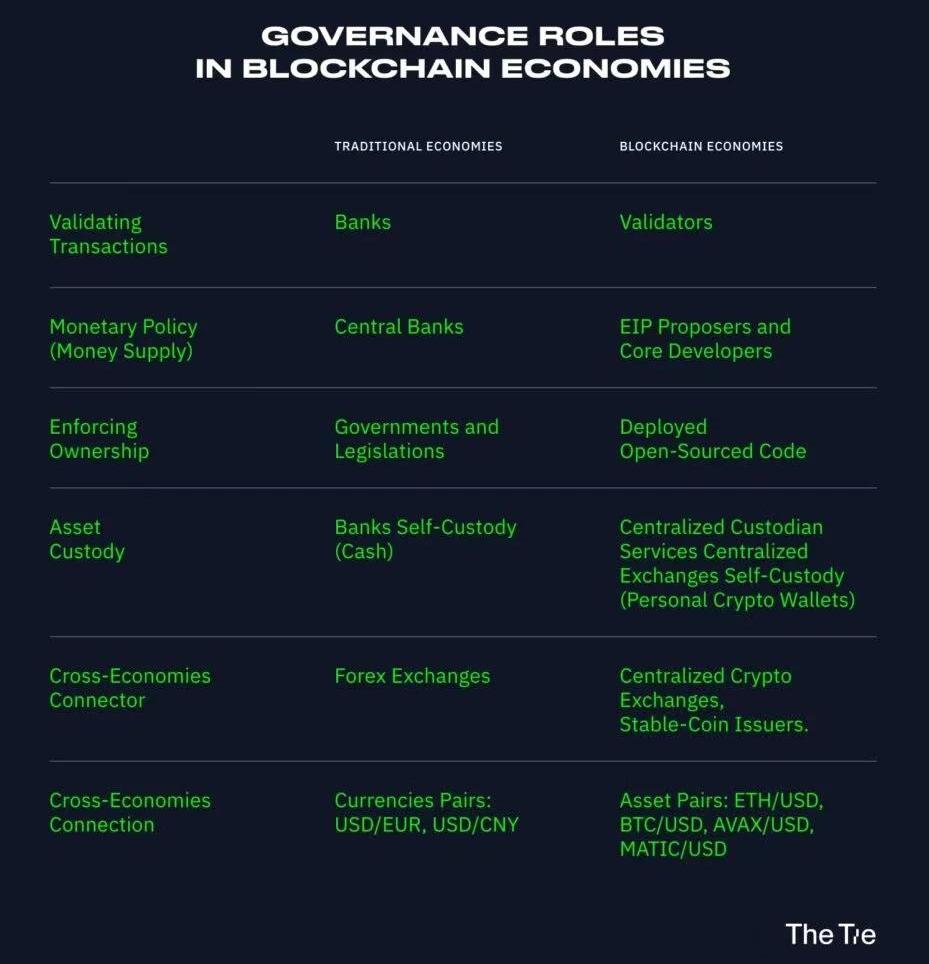 在企業所有權結構中,所有者或股權投資者是利潤的主要受益者。他們也有通過對關鍵決策投票來保護自己利益的合法權利。然而,經濟體是有合法所有者的。個人和組織可能會影響治理決策,可以幫助一個群體比其他群體從更高的生產力中獲得更多收益。縱觀歷史,政客和有影響力的人物經常為了自己的利益而犯下腐敗和欺詐行為。為Web3項目和區塊鏈經濟體構建治理結構面臨著類似的挑戰,但也有助于不同治理結構的創新和探索。在過去的兩年里,許多創新的治理結構都在努力維持區塊鏈經濟所需的勢頭。參與決策的人越少,決策就越有效率。隨著區塊鏈經濟規模的增長,在代碼庫中達成共識和實施政策變得越來越困難。因此,在一開始就確立基本規則和治理原則——類似于美國的《權利法案》,將有助于保持增長勢頭,營造鼓勵創新的環境。治理在區塊鏈經濟體中扮演什么角色?
