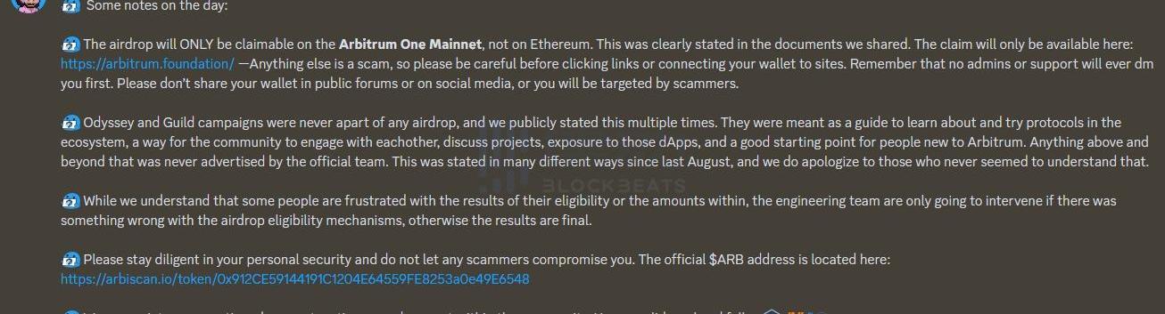 根據Arbitrum官方近期在Discord公布的ARBToken官方合約地址:0x912CE59144191C1204E64559FE8253a0e49E6548