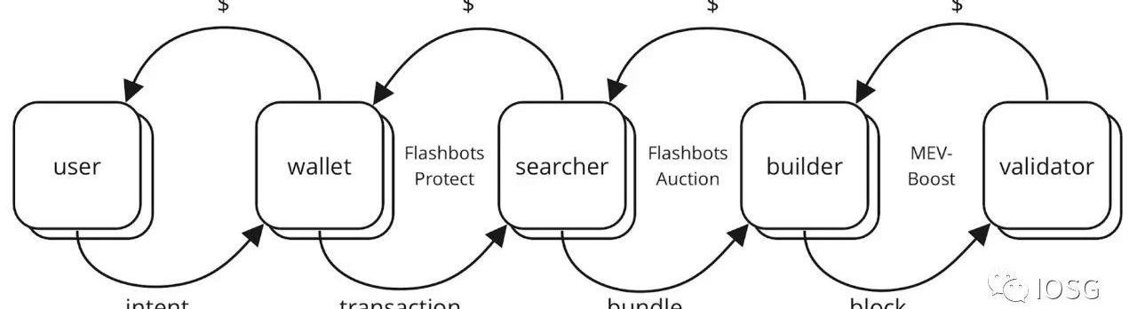 Source:Hasu以太坊合并至今近半年時間,我們已經有了相對確定的MEV供應鏈以及對應的工作流。這個工作流基本上是在做「整合」這件事情:錢包整合用戶的交易,搜索者整合套利機會,構建者整合訂單流。由單個用戶發出的交易作為起始,直到驗證者提議一個區塊,整個流程已經實現高度專業化。回到2020年末的DeFi浪潮,隨著鏈上金融活動的快速增長,MEV初現端倪。彼時的礦工與MEV搜索者之間幾乎沒有直接的通信渠道,搜索者只能單純支付更高的Gas費用,以期交易得到包含。這造成了網絡擁堵和Gas費用的波動,給以太坊網絡造成了負面的外部性。FlashbotsAuction基于拍賣機制,創建了礦工與搜索者之間的通信渠道,前者出售區塊空間,后者捕捉套利機會,實際上實現了區塊空間的市場化。另一個問題是,大型驗證池與個人驗證者捕獲MEV的能力差距懸殊,而前者本就擁有更高的概率被選擇為提議者,這將逐漸導致以太坊驗證者集的中心化。于是PBS被提出,即無論大型驗證池還是個人驗證者,都把區塊外包給專業的區塊構建者進行構建,以此創造相對公平的競爭環境。作為先于協議層的PBS實施,MEV-Boost延續了FlashbotsAuction的拍賣機制,減輕了驗證者在MEV層面的中心化問題。并且仍然需要什么?