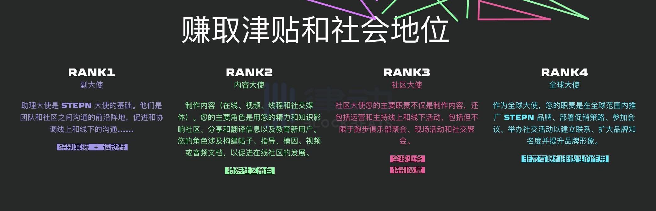 Launchpad是NFT生態系統中創作者不可或缺的工具,隨著它的出現,可使Web3項目進入公眾視野的過程變得更加順暢。它為創作者解決了一系列后勤問題,以及提供了對NFT業務的必要洞察力。而MOOARlaunchpad還將為該平臺的獲獎項目提供專門的支持,包括通過社交媒體和相關渠道提供營銷支持、項目示意圖的一般咨詢以及鑄幣后支持等。因而創作者將能減少營銷、策劃和籌款方面的麻煩,專注于開發自己的產品。值得一提的是,MOOARlaunchpad還為獲獎項目建立了專門的「大使計劃」,這也是STEPN在初期能獲得快速傳播的關鍵。「大使計劃」分為了四類:助理大使、內容大使、社區大使和全球大使,從精細化的職能分配上全方位地給予項目持續的支持。
