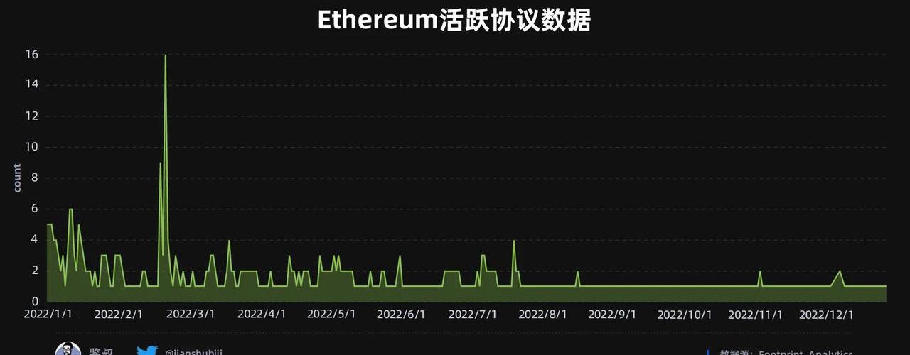2022年主要游戲公鏈GameFi活躍協議數量變化數據源:Footprint以日活躍用戶數大于100作為標準區分活躍協議,得到主要游戲公鏈GameFi活躍協議數量變化,與前文GameFi項目數據圖表對比來看,游戲總量雖然一直在增長,但是活躍協議數量一直在下降,明顯受到市場低迷的影響。