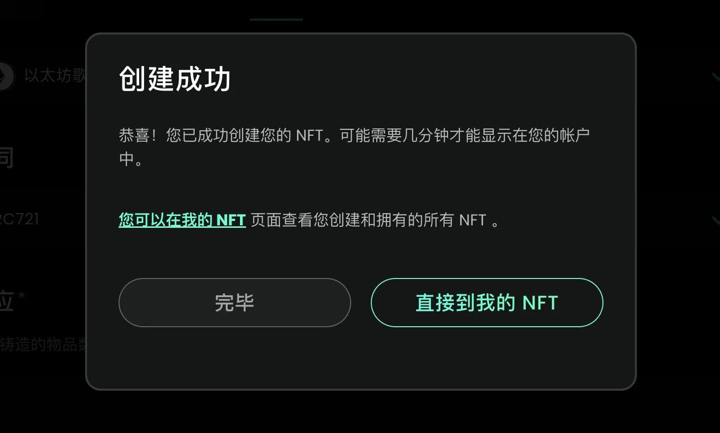 創建成功后會彈出以下頁面,點擊“直接到我的NFT”。