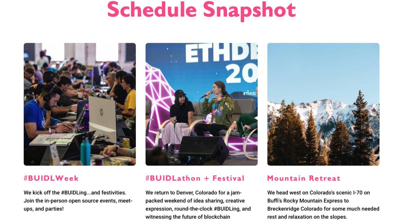 XRP/HKD-0.73%整理:angelilu,ForesightNewsETHDenver是全球最大、持續時間最長的以太坊活動之一,主要面向以太坊和其他區塊鏈協議愛好者、設計師和開發人員舉行,其首次活動于2021年6月由SporkDAO開創舉辦。今年的ETHDenver2023活動將于2月24日至3月5日在美國丹佛舉行,其中BUIDLWeek舉辦時間為2月24日至3月1日,核心活動舉辦時間為2023年3月2日至3月5日,議程最后還包括3月6日至9日的山區度假。