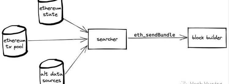 內存池里的交易對每一個節點來說是不同的,但是對于整個區塊鏈網絡上來說,他所包含的數據卻是公共的。換言之,只要有人能夠在全球各地云服務器上架設節點,他就可以獲得大部分的內存池數據。內存池數據的濫用,對于普通用戶來說是極其不友好的。正如我在開頭所講述的案例中一樣,套利者可以提前知道用戶的交易意圖從而進行獲利。這一獲利的過程我們稱之為MEV。搜索者:也稱為以太坊機器人操作員,目前我們所了解的套利者、nft-mint機器人都可以歸類到搜索者這一個范疇。搜索者和Flashbots息息相關,在Flashbots開源了他們的拍賣組件之后,搜索者可以通過發送捆綁包的方式,將自己的交易或者是內存池的交易按順序拼接起來,并且指定某個區塊構建者讓他們把這個捆綁包里的交易包含在區塊里,從而避免其交易在公共內存池之中被嗅探到。