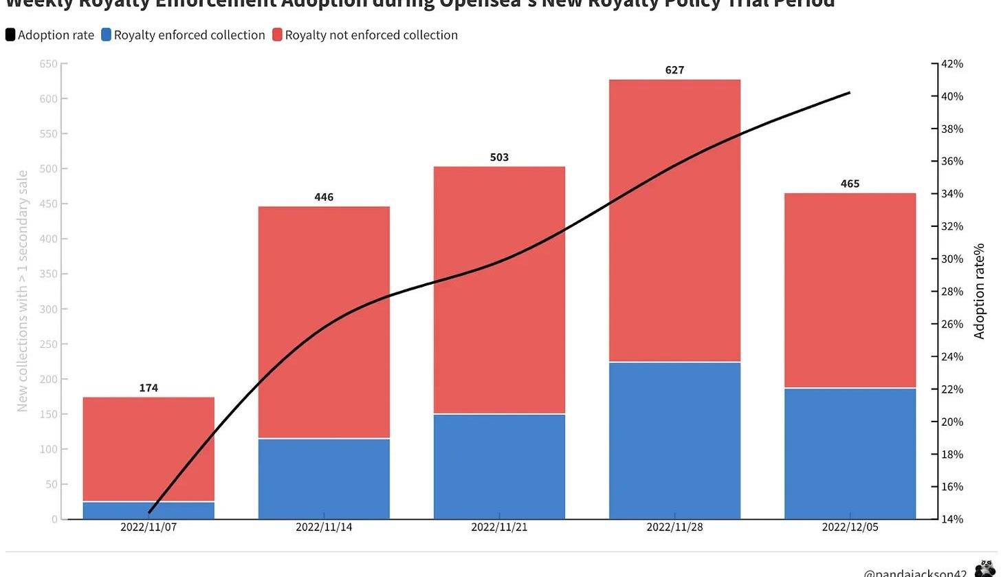在此期間,Blur甚至為此改變了其具有吸引力的價格策略,試圖通過承諾執行版稅來吸引NFT的創作者。
