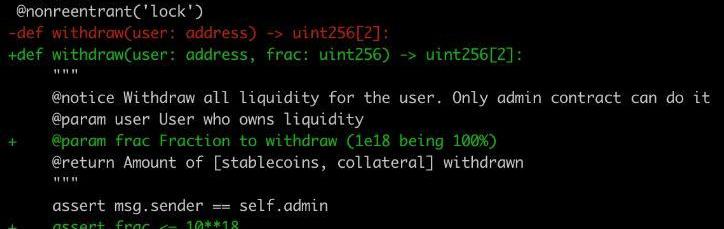 與單元測試的變化相比,實際運行中智能合約的變化更值得重視。由于智能合約是不可變的,而且Curve智能合約的不可變程度更高。一些協議通過使用可升級的代理合約來欺詐用戶。代理合約允許一個地址從任何其他地址繼承其邏輯,并且可以隨時更改。Curve不會這樣做。這很棒,因為這意味著沒有人可以欺負你。但另一方面來說,這也很糟糕,因為這意味著開發人員無法在事后修復錯誤或添加新功能。開發人員需要多花一點時間來思考極端情況,并需要在發布正式產品前預見到每一個未來可能用到的功能。任何人都不可能把事情做得面面俱到,但是在合約啟動之前,花更多的時間來研究合約可以揭示新功能的用處。就目前而言,crvUSD智能合約套件比一個月前推出時更具特色和用戶友好性。幾個例子:一個早期Curve合約的問題是缺少get_dx()、get_dy()函數,這些函數的功能是用于為用戶的特定輸入顯示會得到多少代幣。因為有時人們用戶知道應該提供多少代幣才能確保特定的輸出。新邏輯提供了一個get_dxdy()函數,帶有一個有用的切換以確定它是用作get_dx()還是get_dy()。這些變化可以在curve-stablecoin-js存儲庫得到證實。