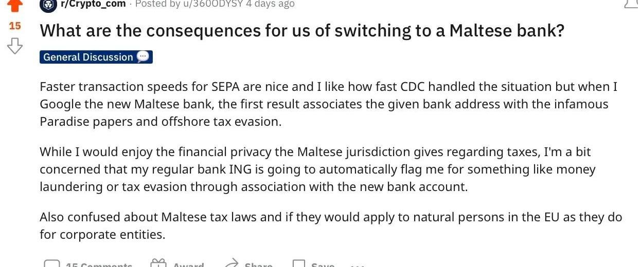 在關停了立陶宛TransactiveSystemsUAB銀行賬戶后,Crypto.com很快找到了新的銀行合作伙伴,并能夠重新獲得SEPA以歐元計價的存款和取款服務。現在,Crypto.com用戶需要將存款發送到一家名為「ForisDAXMTLimited」的公司擁有的銀行賬戶,該公司位于馬耳他,是Crypto.com在當地的控股公司。可能很多人會說,Crypto.com在選擇合伙伙伴時應該選擇一些監管機構可靠、令客戶放心的金融機構。很明顯馬耳他境內的銀行并不是一個最佳的選擇,但他們卻可以在短時間幫助Crypto.com盡快恢復匯款業務。
