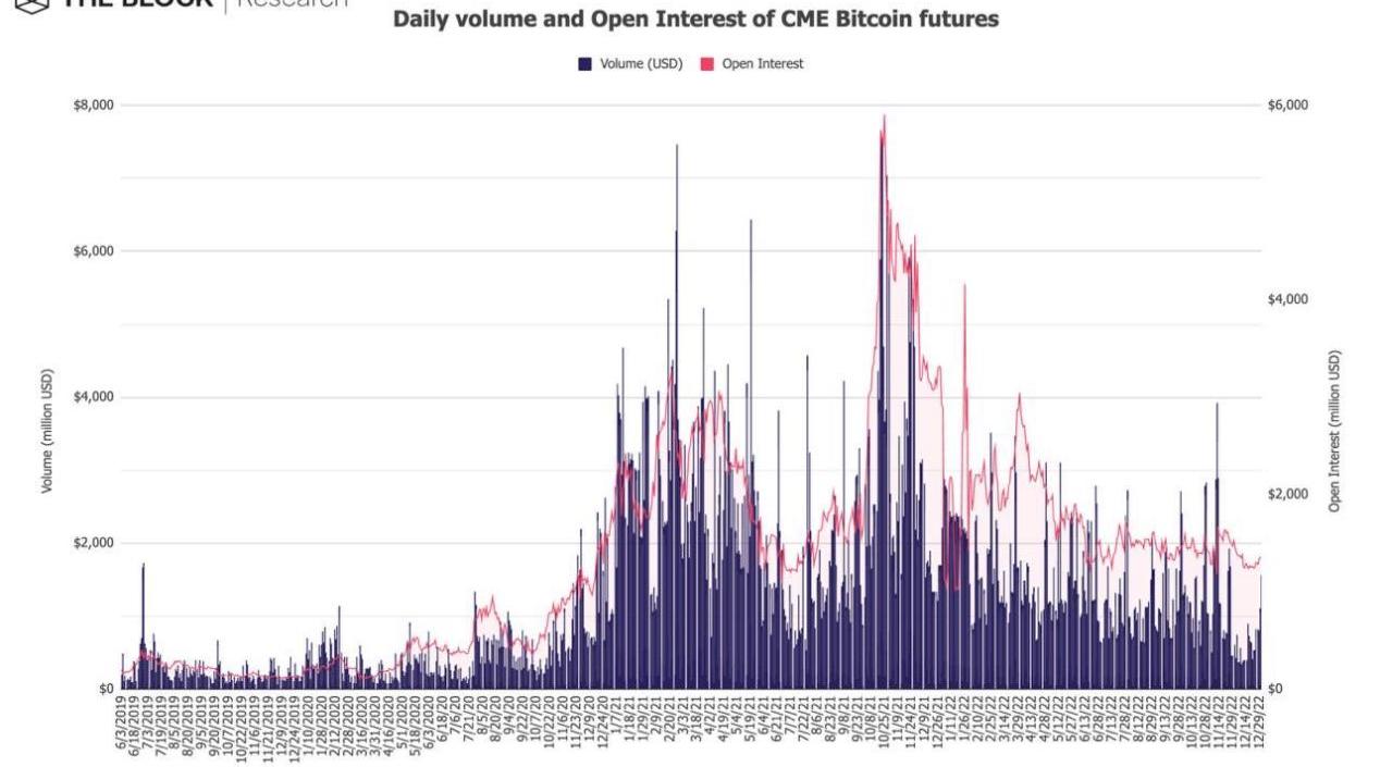 10、12月芝商所的比特幣期貨未平倉頭寸規模下降了11.1%,跌至13.6億美元,日均成交量僅為6.32億美元,下跌53.1%。