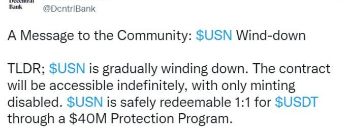 第二個是Near的USN。USN作為一個算法穩定幣在8個月前剛剛推出。UST崩潰后,USNv2過渡到用USDT鑄造USN。但由于雙重鑄幣,出現了‘4000萬美元的抵押品缺口’,導致項目關閉。
