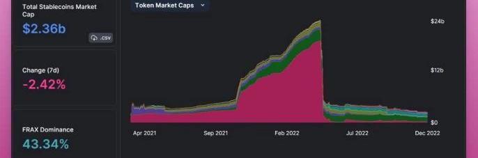 圖片來源:由無界版圖AI工具生成由于UST的崩塌,2022年對算法型穩定幣來說是艱難的一年。根據DefiLlama數據顯示,截至今天,算穩的市值只有23.6億美元,只占穩定幣總市值的1.6%。