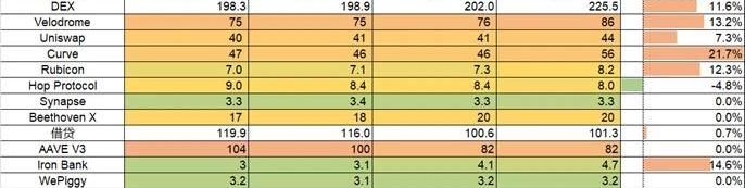 本周各鏈TVL均出現較大增長,其下多數協議也均迎來反彈,基本呈現大公鏈借貸協議增長超過DEX類協議,小公鏈DEX類增長大于借貸類,另Arbitrum本周出現滯漲,上周已完成對Polygon的反超,所有鏈中TVL第四名,本周重新回落。1)ETH鎖倉量情況