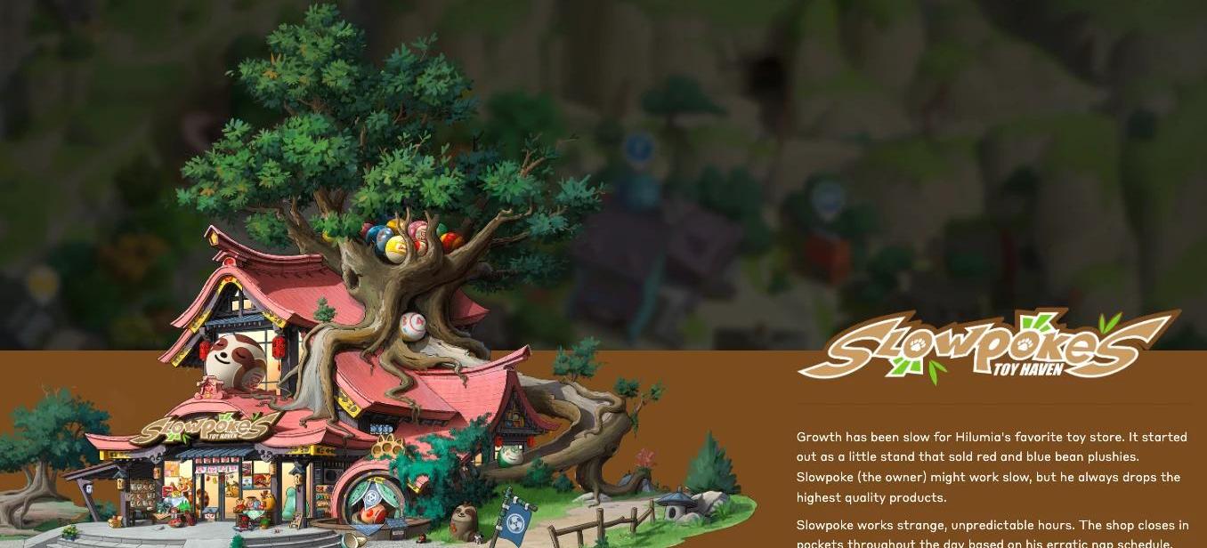 Slowpoke'sToyHaven:一個玩具商店,最初是一個賣紅豆和藍豆毛絨玩具的小攤,當然也會產出其他優質玩具,但產出時間無法預測。