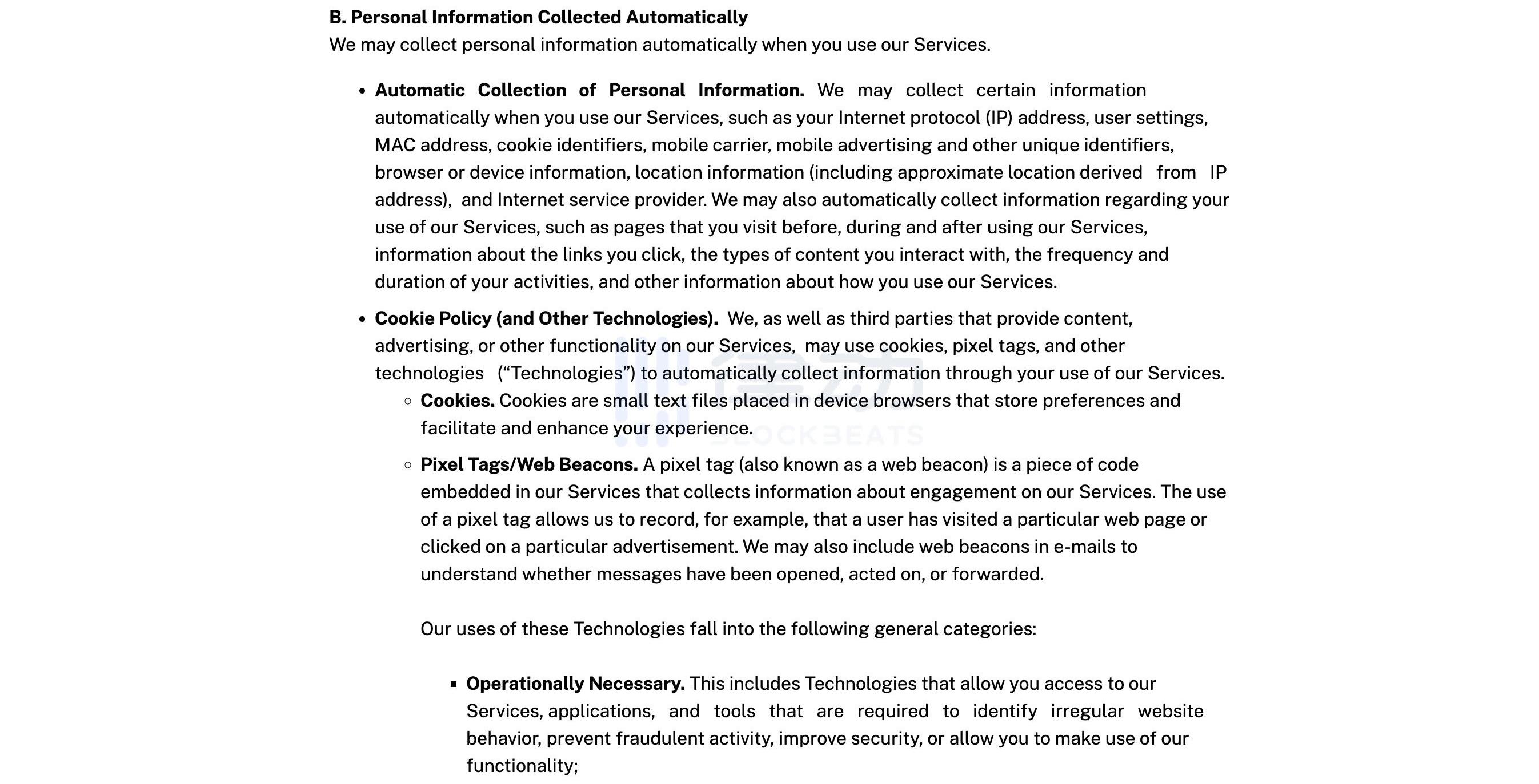 文件顯示:「當您使用我們的服務時,我們可能會自動收集某些信息,例如您的IP地址、用戶設置、MAC地址、cookie標識符、移動運營商、移動廣告和其他唯一標識符瀏覽器或設備信息、位置信息以及互聯網服務提供商。我們還可能會自動收集有關您使用我們服務的信息,例如您在使用我們服務之前、之后訪問的頁面、您點擊的鏈接信息、您互動的內容類型、您活動的頻率和持續時間,以及有關您如何使用我們服務的其他信息。」Moralis