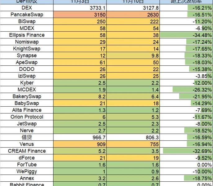 本周TVL總量下降9.45b,下降幅度為17.5%;其中以Solana跌幅最大,單周TVL下跌量達55%,ETH鏈整體下降約為15%,Polygon鏈表現最佳,整體下跌11%,其余各鏈下跌幅度基本在25%附近。