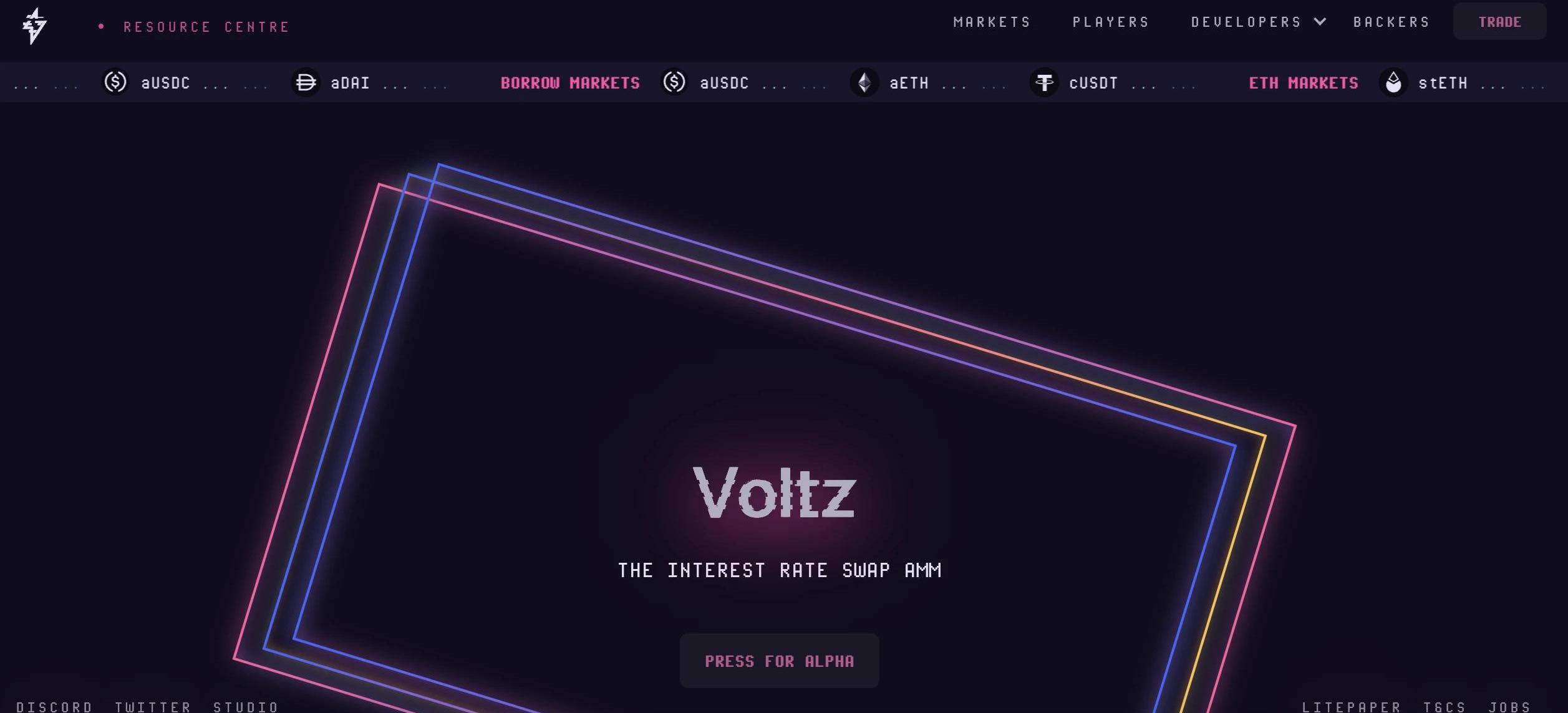 項目簡介:基于IRS的做市商協議。最新進展:主網上線。項目融資:2021年12月,600萬美元種子輪,FrameworkVentures領投,FabricVentures、CoinbaseVentures、AmberGroup、Wintermute、RobotVentures、Mgnr、EntrepreneurFirst及其他天使投資者參投。項目鏈接:https://www.voltz.xyz/交互建議:區別與傳統的AMM做市商,協議挺特別的,還未發幣,可以體驗。詳細交互方法:第一步:進入項目功能頁面;第二步:選擇一個“交易對”進行交易;第三步:提供流動性;第四步:撤出流動性。