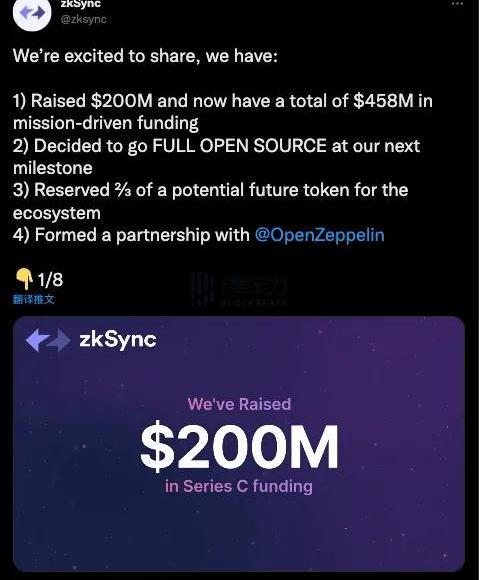 本文不會重復zkSync官方推特已經發布的內容,僅對SteveNewcomb在Bankless播客中透露出的內容做出整理并簡要分析。1.首先,此次公告并不是Token發行公告,僅僅是融資公告,官方稱之為「FairRaise」。對此,wagame.eth認為新進投資者的加入條件應該是確保發行TokenZKS,這個決策將由zkSync官方做出,并且三分之二分配給生態系統將是板上釘釘。Steve將三分之二的分配比例同StarkNet的分配比例進行了對比。奇怪的是,他還與Arbitrum的Token分配進行了對比,并稱Arbitrum將有50%Token分配給內部。但Arbitrum官方甚至都從未明確過會發行Token,不知道這是Steve口誤,還是說漏嘴了……BlockBeats注,11月10日,StarkNet基金會宣布成立,并將持有50.1%StarkNetToken。此外,Steve表示,團隊希望在當前投資者的鎖定條款和解鎖條款方面保持透明。團隊不希望Token價格暴漲暴跌,并將盡可能避免這種情況。「這里的每個人都在踐行長期主義。」2.團隊沒有更新主網的時間表,與我們已知的信息相差不大。可以點擊此前的推文鏈接查看。