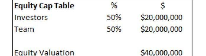 假設股權持有的token(價值2000萬美元)按比例分配給股東(投資者、創始人、員工);投資者最終持有30%的token(20%直接通過token,10%間接通過股權)。