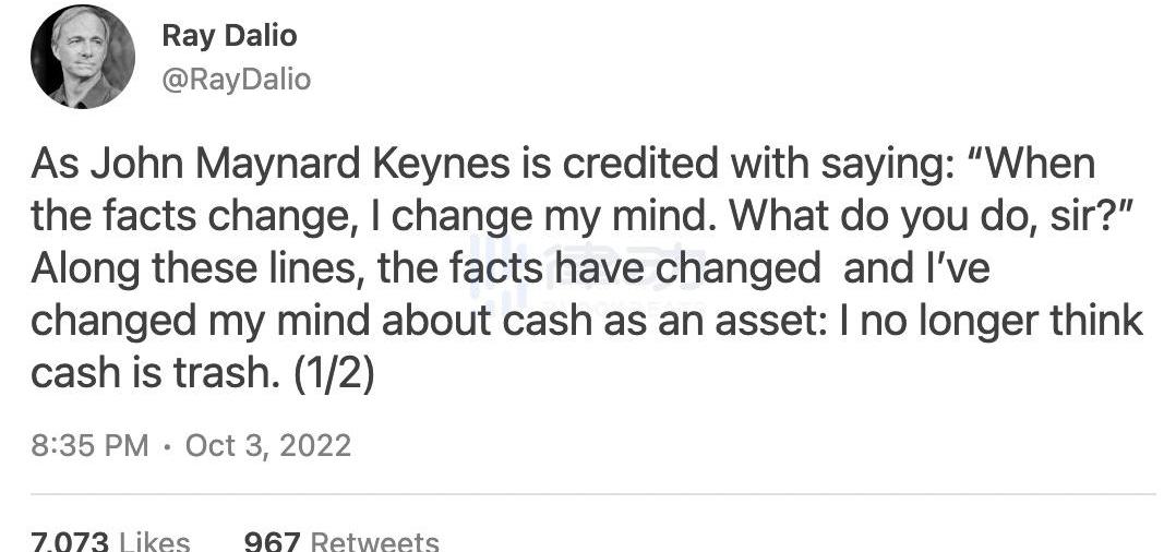 crypto行業,在UST崩潰和流動性全面枯竭之后,目前正在經歷自我反省和收拾殘局的階段。美元正在摧毀所有人,加之市場可以完全規避風險。現金的地位從垃圾變成了王者,正如橋水基金創始人瑞·達利歐所說:「我改變了關于現金作為一種資產的看法,我不認為現金是垃圾。」