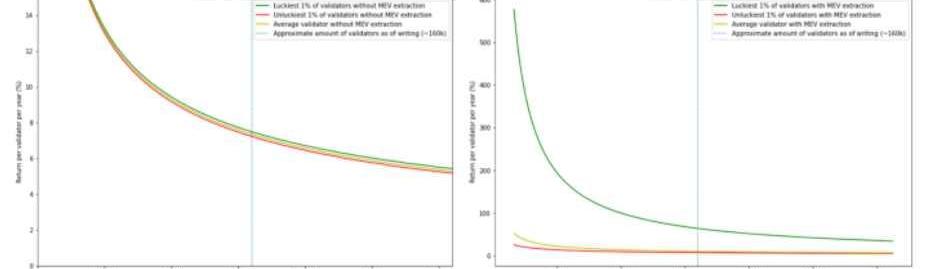 來源:RelatedNetwork在研究以太坊是如何應對中心化威脅之前,我們先介紹為什么驗證者最終會變得中心化。在以太坊的POS機制下,區塊生產者可以選擇將哪些交易包含在下一個區塊中以及后續是如何排序的。這允許驗證者參與MEV提取的過程,Amber在他們最近關于ETH合并的文章中對此進行了很好的定義。「最大可提取價值,也稱MEV,廣義上是指礦工或驗證者在給定可用的操作中,在一系列區塊中獲得剩余價值。這些操作可以包括對交易重新排序、審查區塊,甚至嘗試重組區塊鏈。一些常見的MEV形式包括三明治攻擊、套利和清算。」