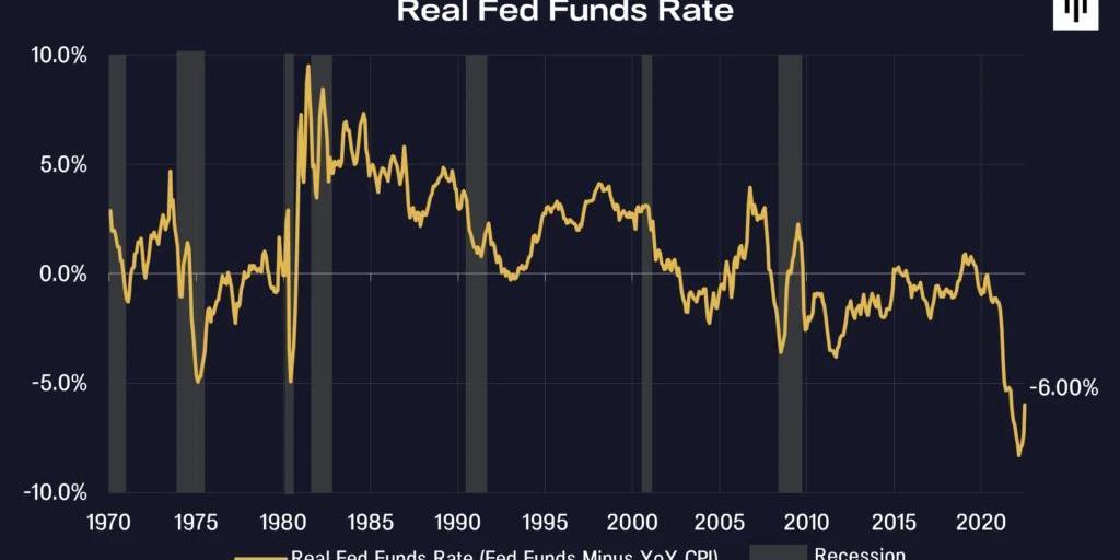 美聯儲尚未真正收緊貨幣政策。在過去幾年中,通脹率的上漲遠遠超過聯邦基金利率。同樣重要的是,美聯儲沒有放棄操縱政府債券和抵押貸款市場。實際利率,即投資者扣除通貨膨脹補償后獲得的利率,接近有史以來的最低水平。
