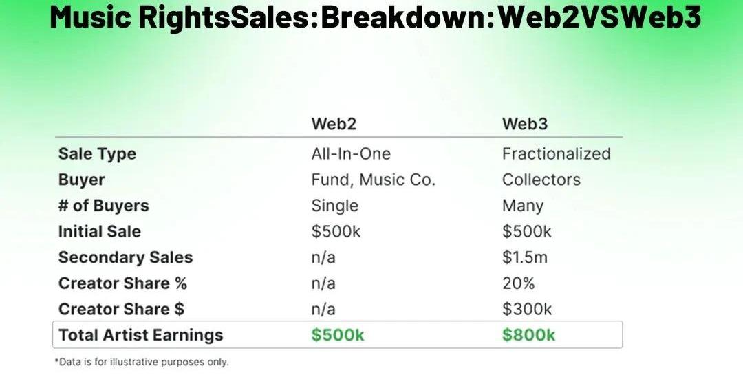 創作者的收入轉變:當你可以永久獲得報酬時,為什么要獲得一次報酬?通過NFT創作者可以設定創作者份額并獲得后續二次銷售的提成。Web2時代版權賣給一家公司,Web3時代版權直接賣給用戶。