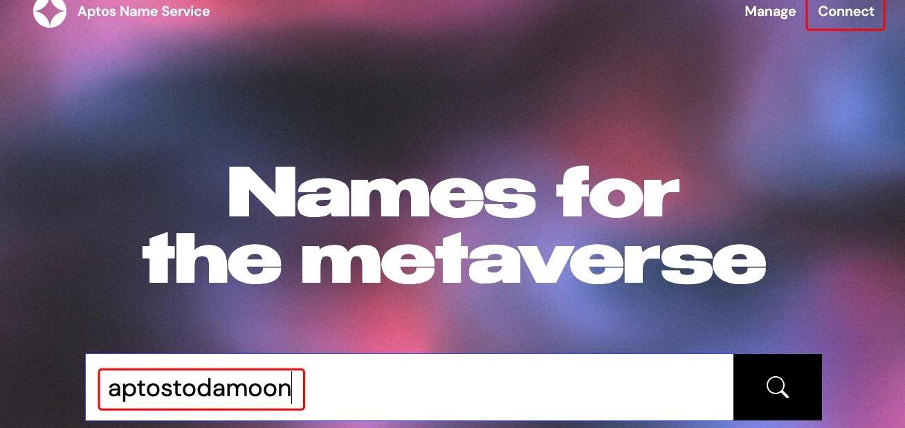 Aptos生態內主攻域名服務的項目暫時僅有AptosNameService一家。AptosNameService基本上可以理解為Aptos生態內的ENS,交互方式為先鏈接錢包,再于搜索框內輸入自己喜歡的域名內容。