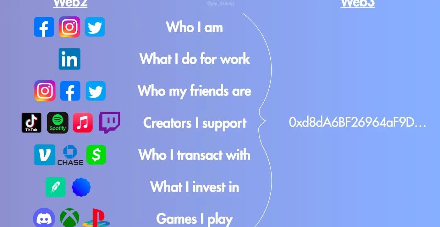XRP/HKD-0.68%在物理世界中,人類通過身份證、護照等政府官方認可的文件進行著「我」是「我」的證明;在Web2媒介中,「身份」衍生成為了一個個社交媒介賬號。當登陸如微信、支付寶等社交媒體時,賬號就是身份的證明,但數據的主動權仍在軟件背后的中心化互聯網巨頭手中,隱私泄露推動了自我主權意識的覺醒。去中心化的身份由此誕生,它改變了已有的身份證明系統,將數字身份所有權、控制權以及管理權歸還給了用戶。DID的核心就是打造鏈上的唯一「身份」證明;而隨著DeFi、NFT乃至DAO等多元化的應用場景崛起,DID成為了構建去中心化社會的“靈魂”。1.DID的內核