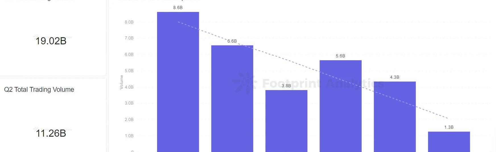 XRP/HKD-1.24%July.2022,VincyDataSource:FootprintAnalytics-NFTQ2Report報告PDF版本:https://footprint.cool/Jvz3在過去一年里,NFT經歷瘋狂NFT的牛市之后,許多人一直在等待泡沫的破滅。目前,這些奇怪的圖片沒能再維持數十萬美元的高價了。市場快速降溫,NFT的輝煌時代是時候結束了。真的是這樣嗎?當前加密貨幣的宏觀形勢嚴峻——整個行業鏈條崩潰,大批資本在向外逃亡,行業頭部CEX正在申請破產……但數據證明,NFT相對于行業其他領域,是更加堅挺的。數據顯示:DeFiTVL下跌68%GameFi的交易量下跌62%NFT的交易量下跌41%NFT的融資額也跌幅57%然而,縱觀整個市場,數據只是其中一角。本報告將對2022年Q2的NFT行業整體數據進行總結和分析,包括NFT市場的整體情況、NFT投融資以及鏈上數據表現的細分分析。還將跟蹤明星項目BAYC、CryptoPunk和Goblintown的關鍵數據。Q2NFT市場整體概覽