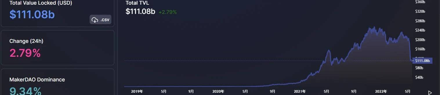 自上周出現了有史以來最大下跌后,本周TVL總量意外的穩定下來,并沒有繼續出現較大跌幅,本周TVL總量下跌1.38B,下跌幅度1.22%,略好于行情端。各公鏈TVL占比情況