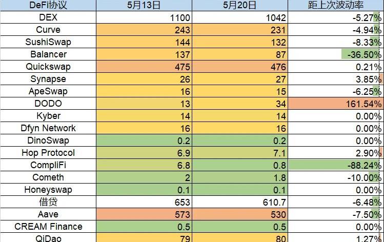 目前市場上重新呈現出ETH的絕對統治地位,其余各公鏈中Fantom鏈本周出現了較大下跌,占比下降0.46%,下降幅度超過25%。除此之外值得注意的鏈有Parallel,其為波卡生態中的Defi平行鏈,以提供Defi類產品為目標,首個上線的產品為Aucitonloan,是一款提供項目方眾籌借貸的平臺。各鏈協議鎖倉量情況
