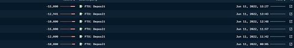 有趣的是,大量的stETH從池中被銷毀,這表明用戶愿意鎖定stETH折扣,無論是長期持有還是將其換成ETH。通過鏈上數據我們可以發現,過去幾天,屬于AmberGroup的錢包從Curve池中銷毀了價值超過1.5億美元的stETH。然后AmberGroup將stETH發送到FTX上。