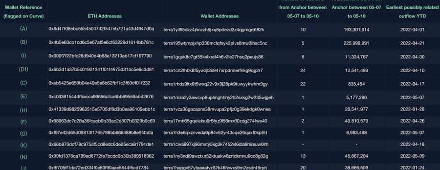 圖13:5月5日至5月8日,按交易額計算,從Terra到Ethereum的前10個錢包(UST)。深挖可疑的錢包