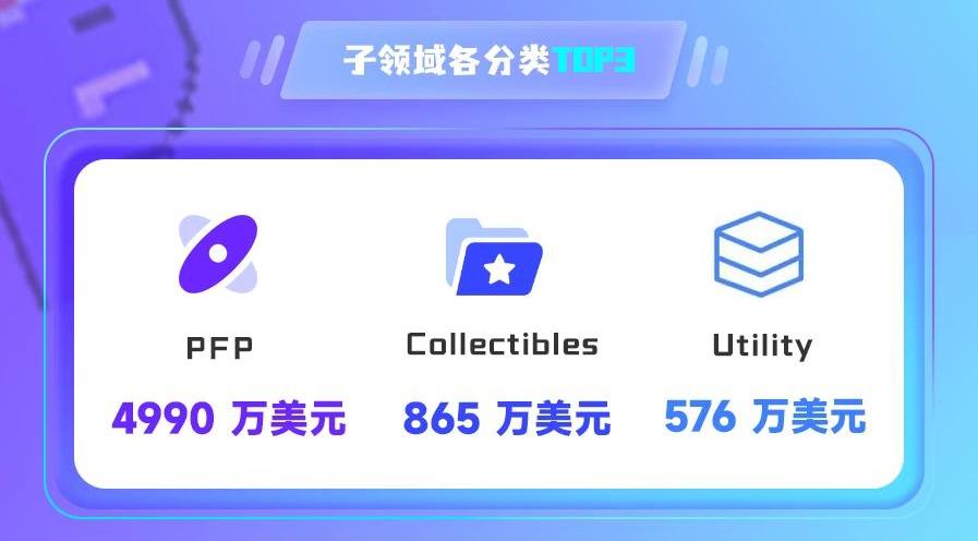 按過去24小時成交量,排前三的子領域分別為PFP、Collectibles和Utility。